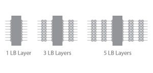 Lắng đọng nhiều lần cho phép tạo ra các cấu trúc đa lớp trên đế rắn. Các chu trình LB và LS cũng có thể được kết hợp để đạt được các cấu trúc và độ dày mong muốn. Kiểu lắng đọng đa lớp phổ biến nhất là đa lớp kiểu Y, trong đó lớp đơn phân tử được lắng đọng theo cả hai hướng lên và xuống. Nếu lớp đơn phân tử chỉ được lắng đọng theo một hướng (lên hoặc xuống), cấu trúc đa lớp sẽ được gọi là kiểu Z hoặc kiểu X. Trong một số trường hợp, các cấu trúc trung gian có thể xuất hiện trong màng LB, và chúng thường được gọi là đa lớp kiểu XY.
