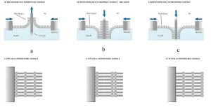 Các phương pháp lắng đọng Langmuir-Blodgett (LB) khác nhau trên đế ưa nước và kỵ nước. Kiểu Z (a) Kiểu Y (b) Kiểu X (c)